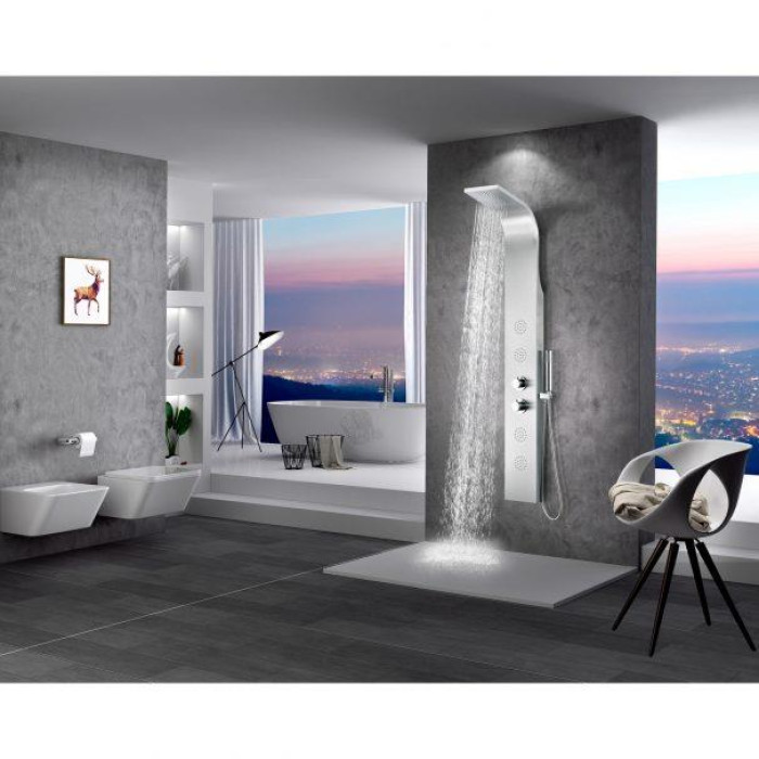 ANZZI is introducing the next level in personal jet stream shower technology with our latest series of elegant and reliably performing panels. The ANZZI full tower Mayor shower panel features a modern laser cut brushed 304 stainless steel frame equipped with 4 Acu-Stream body jets providing a powerful water stream to massage the body. ANZZI panels feature true flow Heavy Rain performance hanging heads and Euro-Grip hand held sprayer. All features are controlled through 2 chrome finish thermostatic and diverter controls.