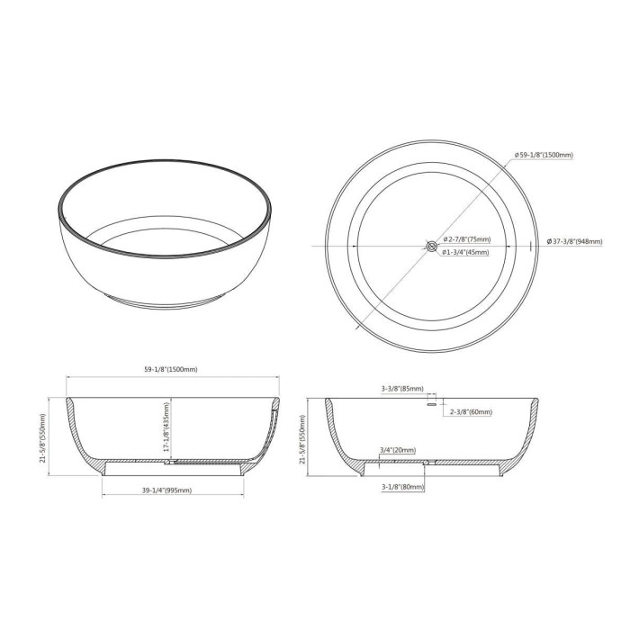 Overall Dimension Dia. 59-1/8 inches