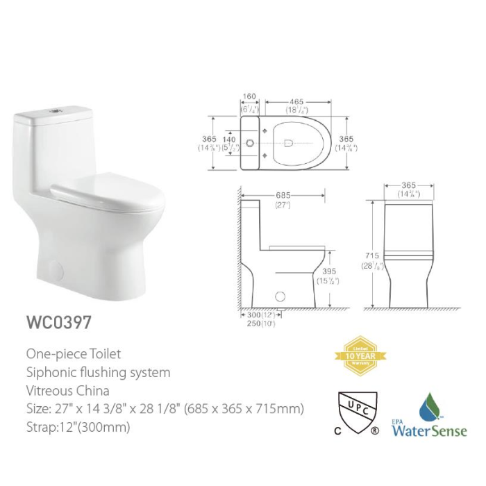 Siphonic One Piece toilet WC0397 by Pasgo with 10 years limited warranty