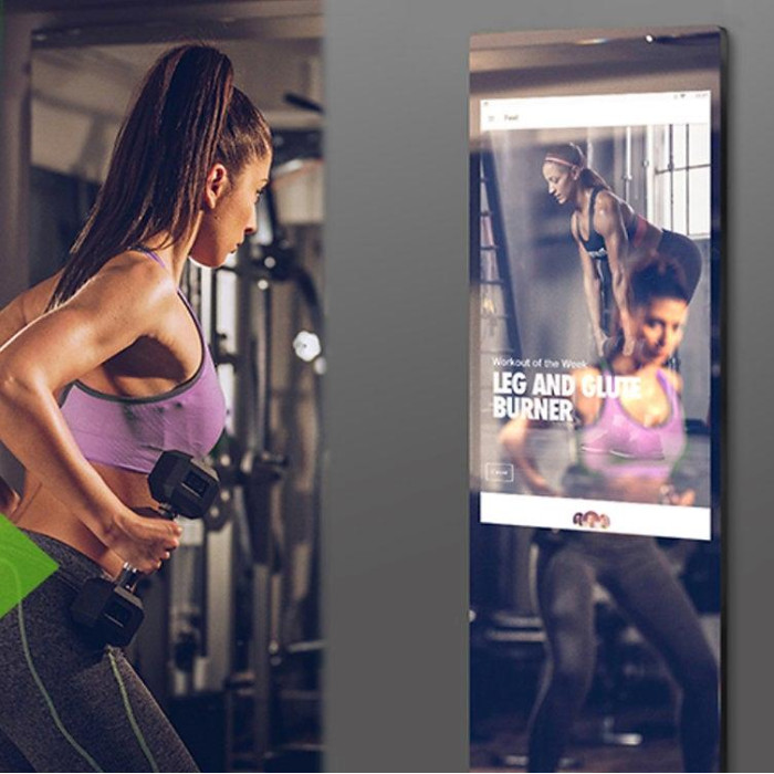 AQUADOM ENERGY Workout mirror is the most popular fitness product or workout mirror, based on Android, the workout mirror will advise you the correct training program or plan, you can even invite family members to join in, enjoy the pleasant sports time. ENERGY Fitness mirrors look like regular mirrors when closed, but have a high-definition screen behind the polished surface that can perform many functions. You will receive training instructions on your favorite music on the display - if necessary. Bio-metric data is received by Bluetooth heart rate monitor and evaluated in real-time by an integrated algorithm. The acquired knowledge will be implemented immediately with new optimization instructions. As a result, you become your own opponent and get the full attention of your personal trainer - almost no sweat. Instead of a simple YouTube workout, you can check your posture and check that you're doing it right here at any time. ENERGY is not only a mirror, it is your personal fitness trainer. With a 32inch capacitive touch screen, 1920*1080P vertical display with 5MP HD camera, which comes with speaker and microphone built-in. Fitness apps can be installed to guide those bodybuilders or correct the users to standard action when doing exercise. Health data can be also be monitored. Except in the fitness club, more and more families own this kind of mirror in their living room to be smart fitness trainers.