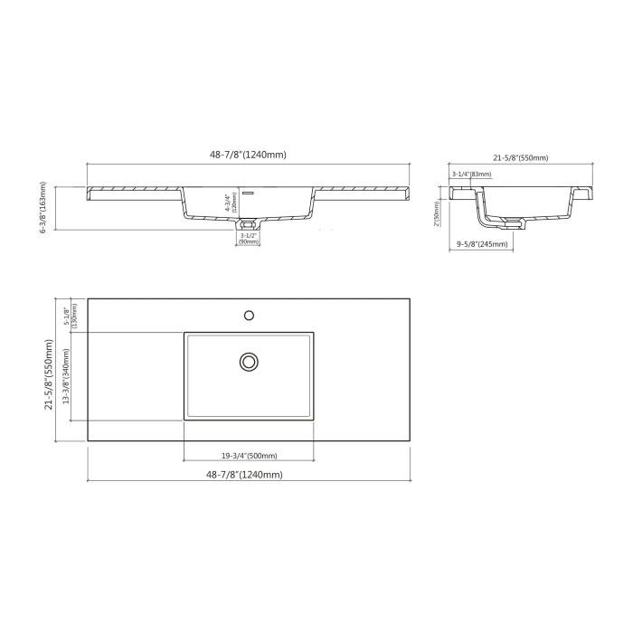 Overall Dimension L 48-7/8 W 21-5/8 inches
