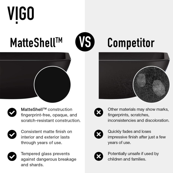 RESILIENT CONSTRUCTION: VIGO's Matte Shell™ is an upgrade on the traditional tempered glass for a safe, stylish experience