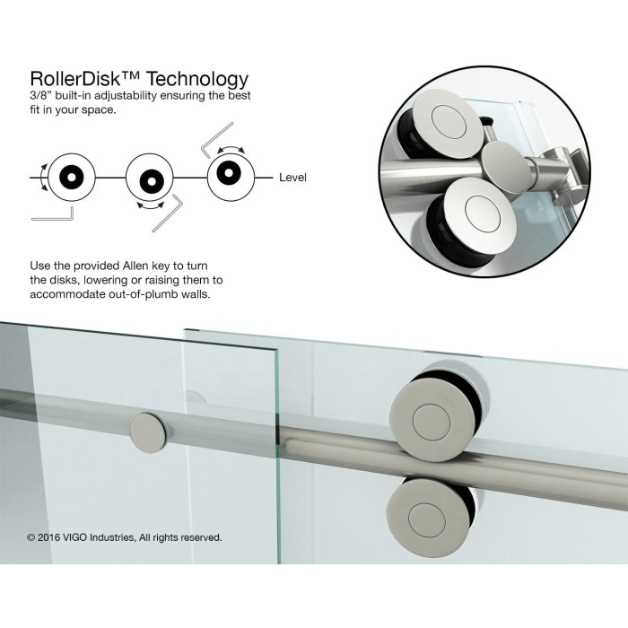 The wall mount brackets for the structural rail have 13mm of built-in adjustability and the fixed panel holders have up to 10 mm built-in adjustability to ensure that your VIGO product is easy to install and accommodate minor adjustments, such as out-of-plumb walls.