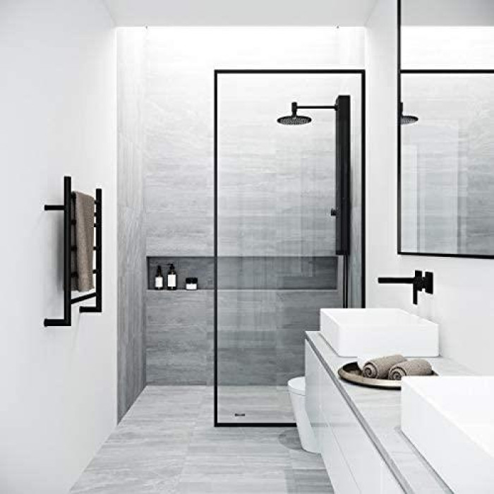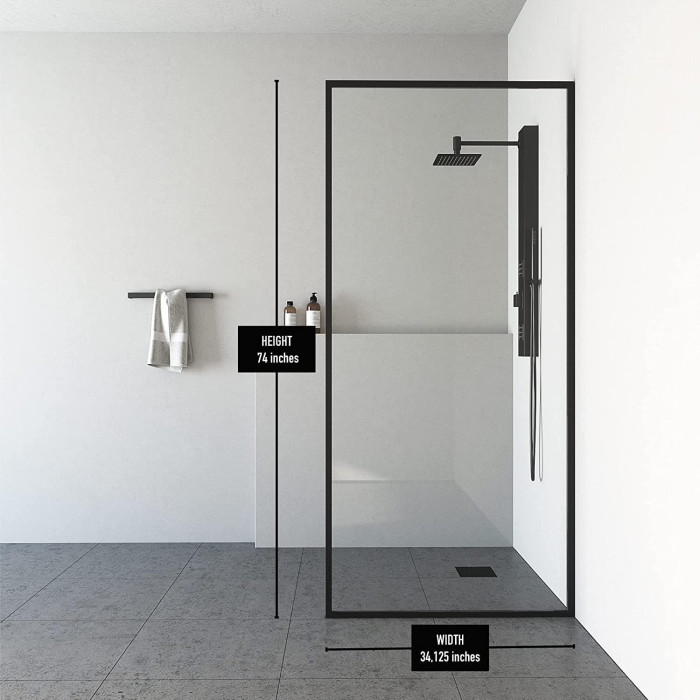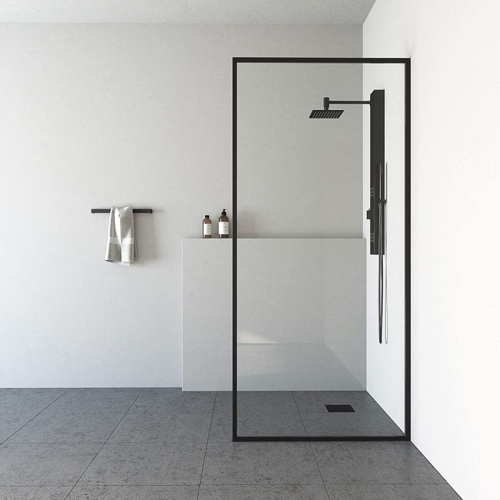 Fixed glass panel creates an open, walk-in shower