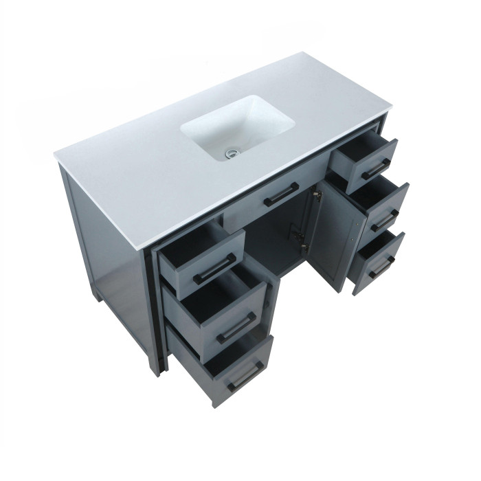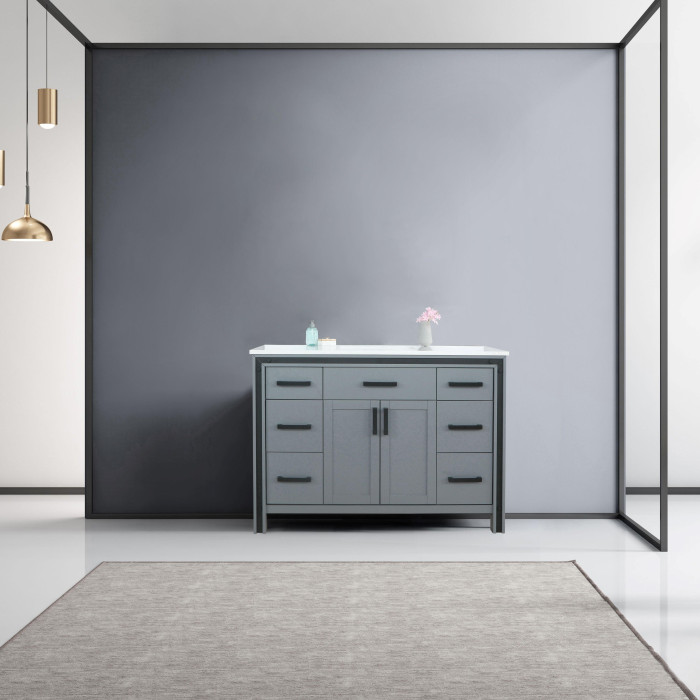 Ziva Dark Grey Single Vanity, Cultured Marble Top, White Square Sink