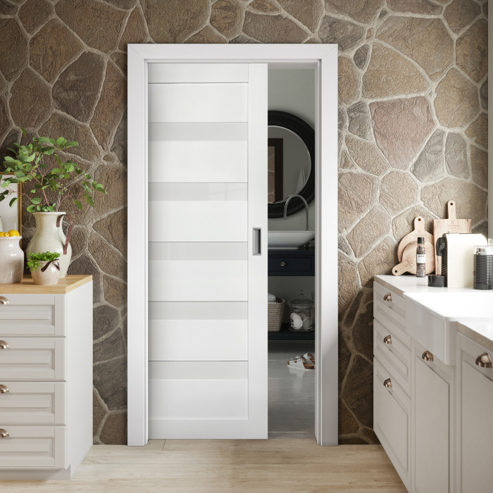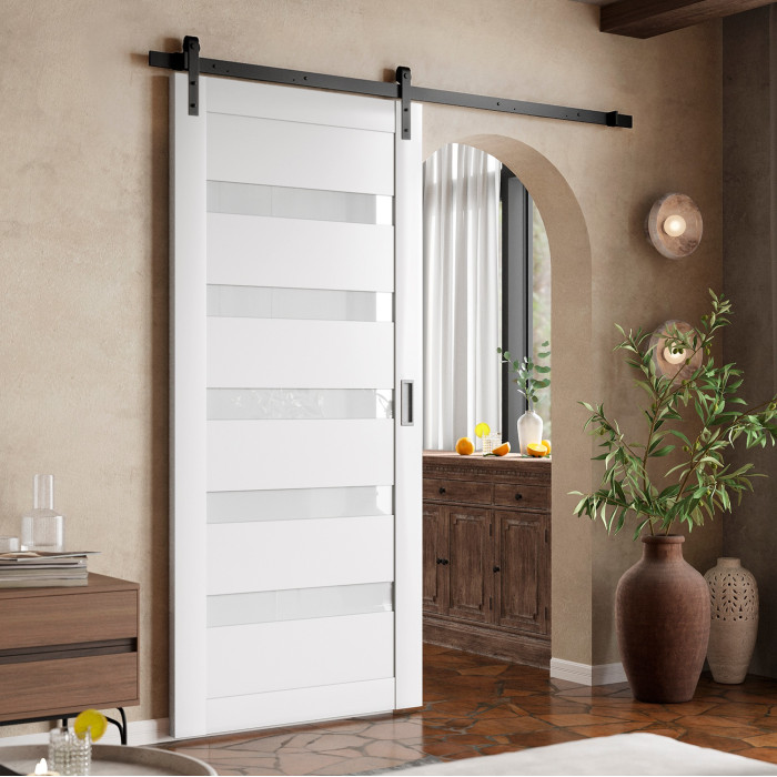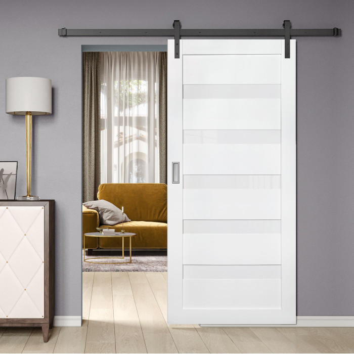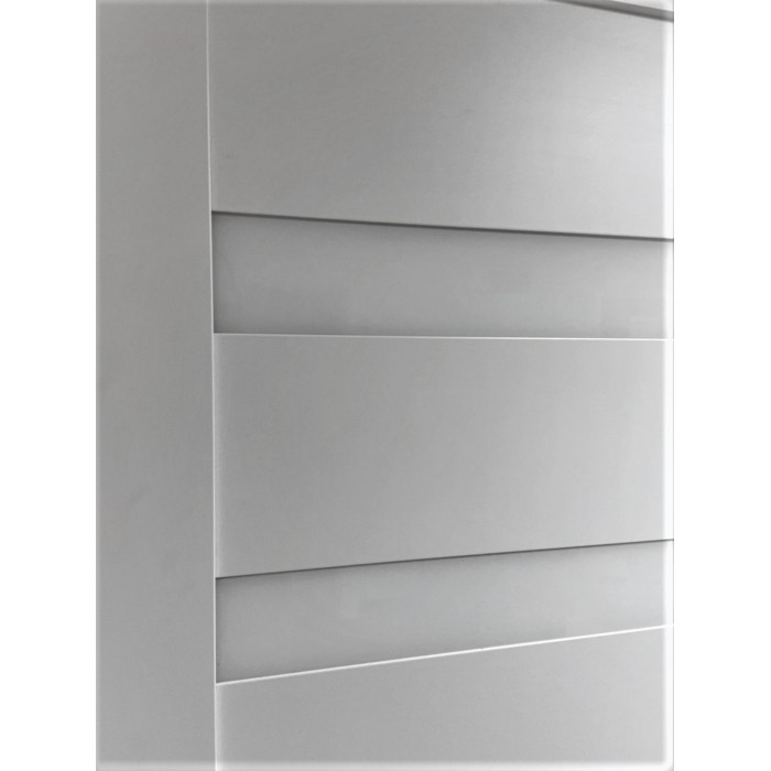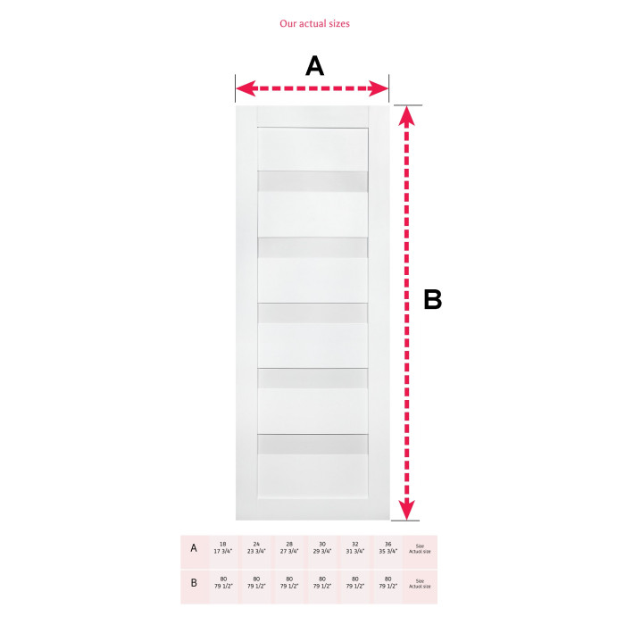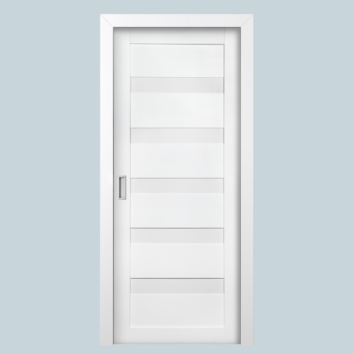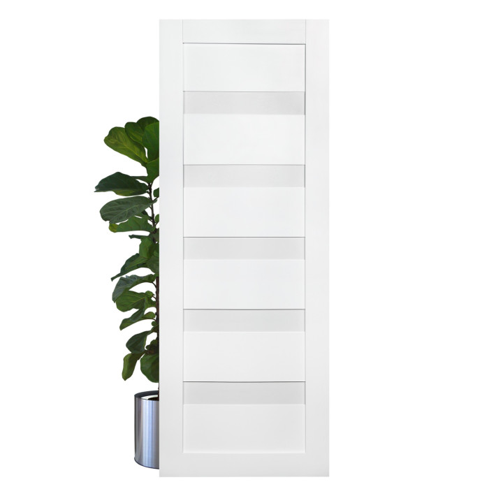 This interior door with a solid core is one of the most popular and universal models in Brilliant Collection of Valusso Design LLC manufacturing company. Smart simplicity of shapes and texture underlines natural wood surface and a great variety of different colors give a wide range of Arcadia model use. It is easy to use Arcadia in any type of a building. The door manufactured of solid wood panels and five horizontal frosted glass inserts, which give to the door amazing visual understanding of its contemporary view. Glass color is white frosted.