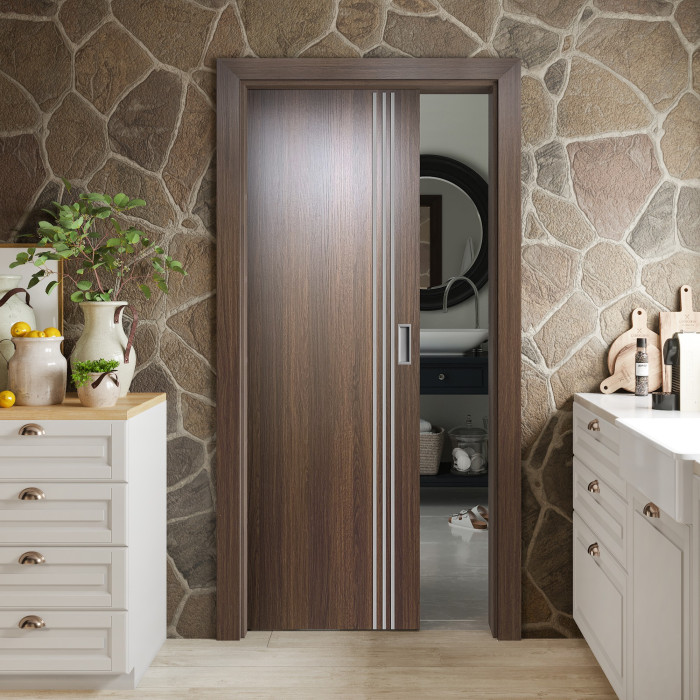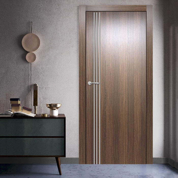The features of the Gainesville door model can be surprising even for professional customers. Valusso Design LLC presents high quality and durability doors with modern style aluminum stripes. Pretty easy in look and fresh in technology of manufacturing, Gainesville door makes hearts beat faster. Three vertical lines give the door ultra-modern view that transfer our consciousness to the future. EDSR (Extra Durable Sound Resistant Hollow Core) high tech technology makes the door durability greater than most solid core doors. The fact that the price for such a door model is lower, it combines as well great durability and high sound insulation, makes this model of the door indispensable detail in every interior of your home.