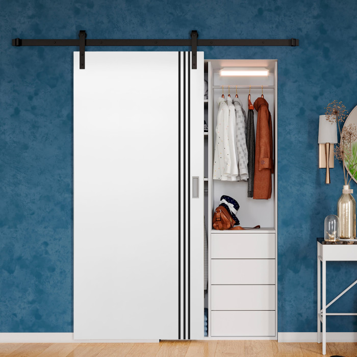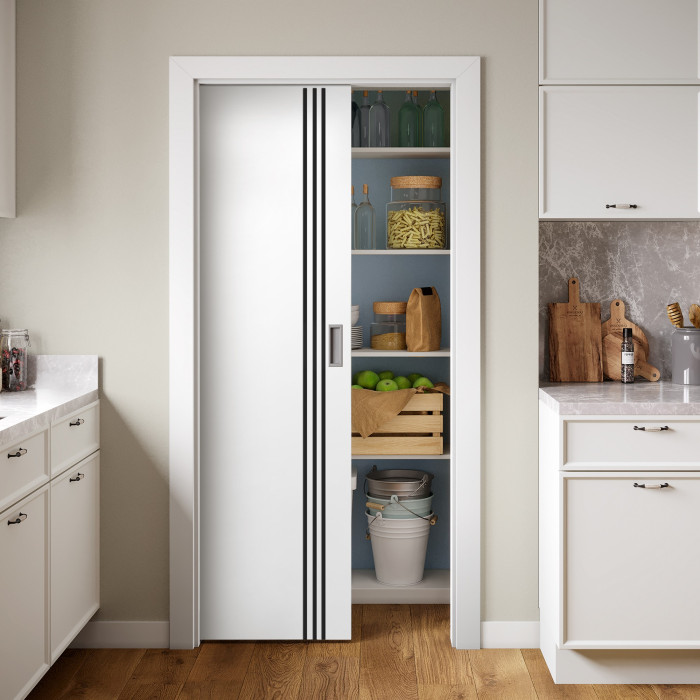 The features of the Gainesville painted door model can be surprising even for professional customers. Valusso Design LLC presents high quality and durability painted doors with modern style aluminum stripes. Pretty easy in look and fresh in technology of manufacturing, Gainesville painted door makes hearts beat faster. Three vertical lines give the door ultra-modern view that transfer our consciousness to the future. EDSR (Extra Durable Sound Resistant Hollow Core) high tech technology makes the door durability greater than most solid core doors. The fact that the price for such a door model is lower, it combines as well great durability and high sound insulation, makes this model of the door indispensable detail in every interior of your home.