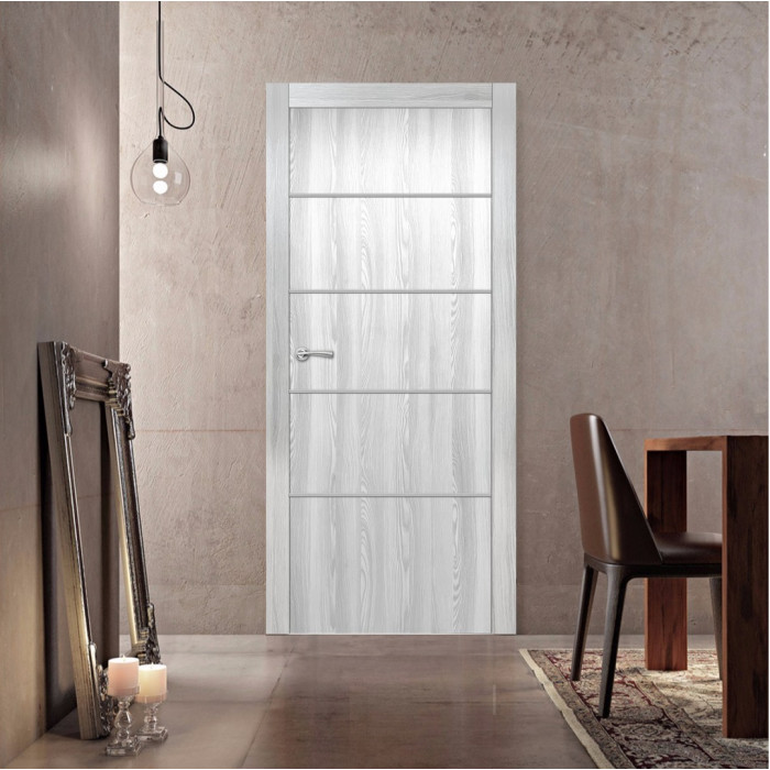The features of the Naples door model can be surprising even for professional customers. Valusso Design LLC presents high quality and durability doors with modern style aluminum stripes. Pretty easy in look and fresh in technology of manufacturing, Naples door makes hearts beat faster. Four horizontal lines visually divide the door by 5 parts and give the door ultra-modern view that transfer our consciousness to the future. EDSR (Extra Durable Sound Resistant Hollow Core) high tech technology makes the door durability greater than most solid core doors. The fact that the price for such a door model is lower, it combines as well great durability and high sound insulation, makes this model of the door indispensable detail in every interior of your home.