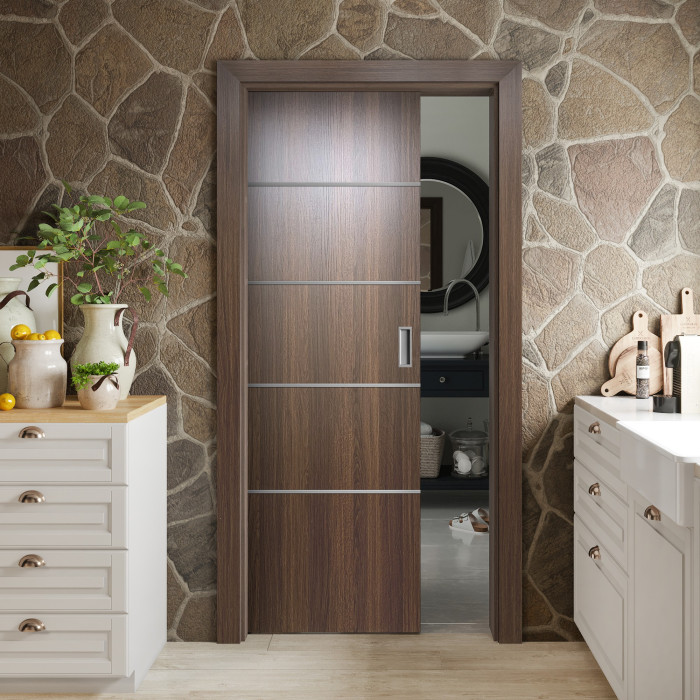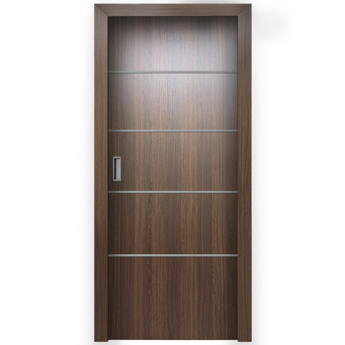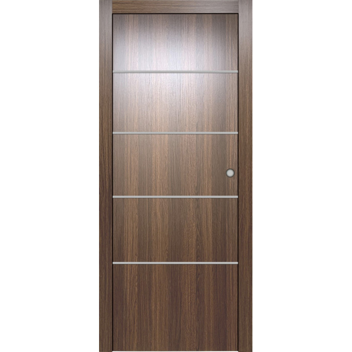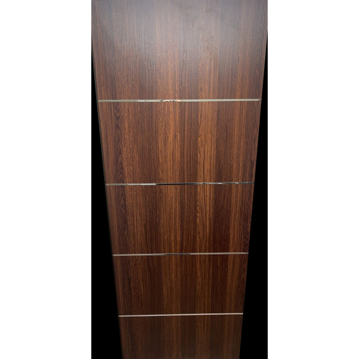 The features of the Naples door model can be surprising even for professional customers. Valusso Design LLC presents high quality and durability doors with modern style aluminum stripes. Pretty easy in look and fresh in technology of manufacturing, Naples door makes hearts beat faster. Four horizontal lines visually divide the door by 5 parts and give the door ultra-modern view that transfer our consciousness to the future. EDSR (Extra Durable Sound Resistant Hollow Core) high tech technology makes the door durability greater than most solid core doors. The fact that the price for such a door model is lower, it combines as well great durability and high sound insulation, makes this model of the door indispensable detail in every interior of your home.