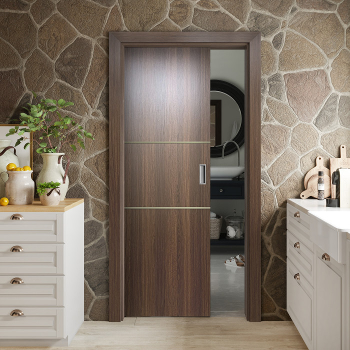 The features of the Ocala door model can be surprising even for professional customers. Valusso Design LLC presents high quality and durability doors with modern style aluminum stripes. Pretty easy in look and fresh in technology of manufacturing, Ocala door makes hearts beat faster. The horizontal lines give the door ultra-modern view that transfer our consciousness to the future. EDSR (Extra Durable Sound Resistant Hollow Core) high tech technology makes the door durability greater than most solid core doors. The fact that the price for such a door model is lower, it combines as well great durability and high sound insulation, makes this model of the door indispensable detail in every interior of your home.