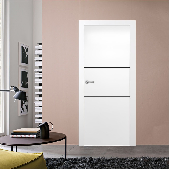 The features of the Ocala painted door model can be surprising even for professional customers. Valusso Design LLC presents high quality and durability painted doors with modern style aluminum stripes. Pretty easy in look and fresh in technology of manufacturing, Ocala painted door makes hearts beat faster. The horizontal lines give the door ultra-modern view that transfer our consciousness to the future. EDSR (Extra Durable Sound Resistant Hollow Core) high tech technology makes the door durability greater than most solid core doors. The fact that the price for such a door model is lower, it combines as well great durability and high sound insulation, makes this model of the door indispensable detail in every interior of your home.