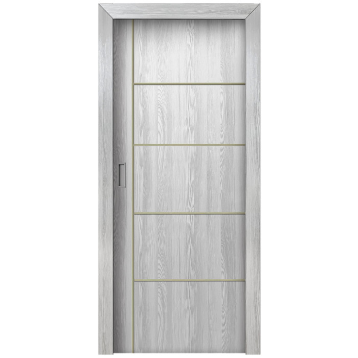 The features of the Orlando door model can be surprising even for professional customers. Valusso Design LLC presents high quality and durability doors with modern style aluminum stripes. Pretty easy in look and fresh in technology of manufacturing, Orlando door makes hearts beat faster. Four horizontal lines, crossed by one vertical line visually give the door ultra-modern view that transfer our consciousness to the future. EDSR (Extra Durable Sound Resistant Hollow Core) high tech technology makes the door durability greater than most solid core doors. The fact that the price for such a door model is lower, it combines as well great durability and high sound insulation, makes this model of the door indispensable detail in every interior of your home.