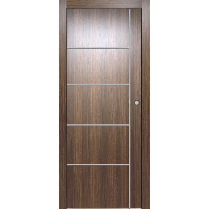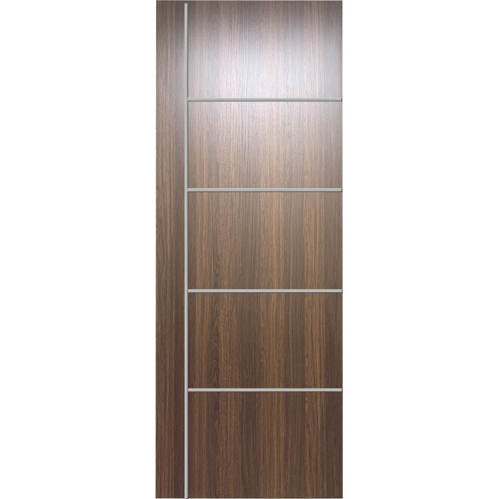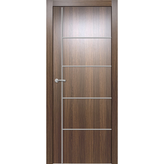 The features of the Orlando door model can be surprising even for professional customers. Valusso Design LLC presents high quality and durability doors with modern style aluminum stripes. Pretty easy in look and fresh in technology of manufacturing, Orlando door makes hearts beat faster. Four horizontal lines, crossed by one vertical line visually give the door ultra-modern view that transfer our consciousness to the future. EDSR (Extra Durable Sound Resistant Hollow Core) high tech technology makes the door durability greater than most solid core doors. The fact that the price for such a door model is lower, it combines as well great durability and high sound insulation, makes this model of the door indispensable detail in every interior of your home.