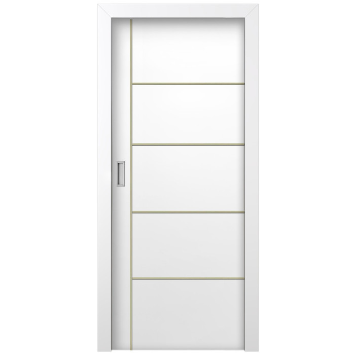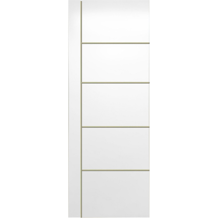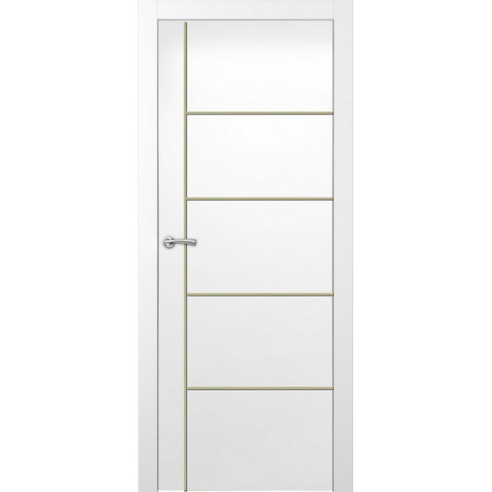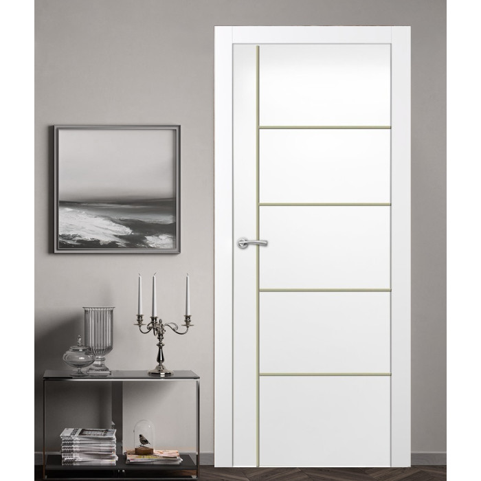 The features of the Orlando door model can be surprising even for professional customers. Valusso Design LLC presents high quality and durability painted doors with modern style aluminum stripes. Pretty easy in look and fresh in technology of manufacturing, Orlando painted door makes hearts beat faster. Four horizontal lines, crossed by one vertical line visually give the door ultra-modern view that transfer our consciousness to the future. EDSR (Extra Durable Sound Resistant Hollow Core) high tech technology makes the door durability greater than most solid core doors. The fact that the price for such a door model is lower, it combines as well great durability and high sound insulation, makes this model of the door indispensable detail in every interior of your home.