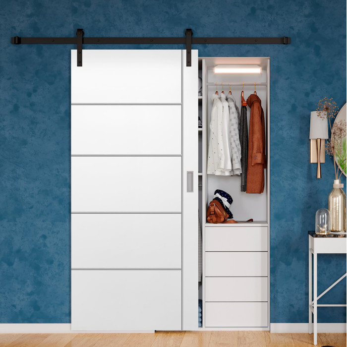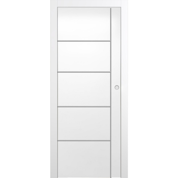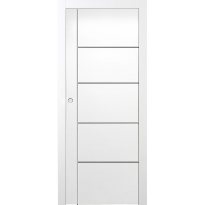 The features of the Orlando door model can be surprising even for professional customers. Valusso Design LLC presents high quality and durability painted doors with modern style aluminum stripes. Pretty easy in look and fresh in technology of manufacturing, Orlando painted door makes hearts beat faster. Four horizontal lines, crossed by one vertical line visually give the door ultra-modern view that transfer our consciousness to the future. EDSR (Extra Durable Sound Resistant Hollow Core) high tech technology makes the door durability greater than most solid core doors. The fact that the price for such a door model is lower, it combines as well great durability and high sound insulation, makes this model of the door indispensable detail in every interior of your home.
