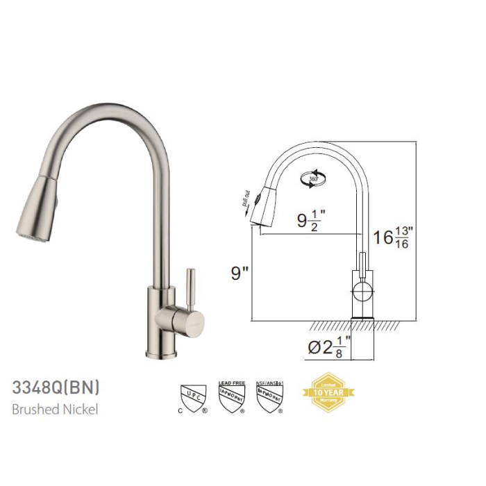 Single Handle Pull-Down Kitchen Faucet 3348Q Brushed Nickel