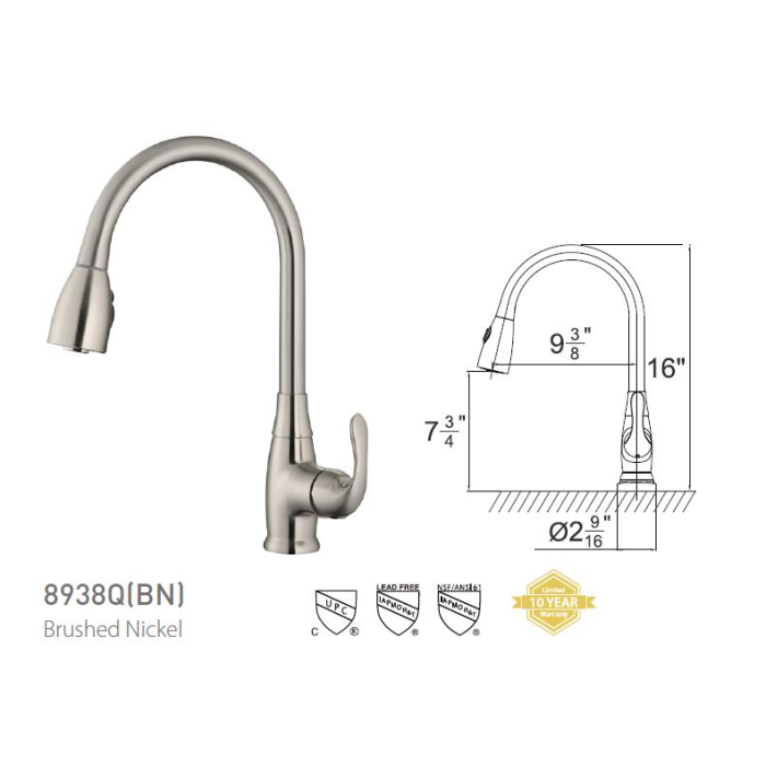 Single Handle Pull-Down Kitchen Faucet 8938Q Brushed Nickel or Polished Chrome