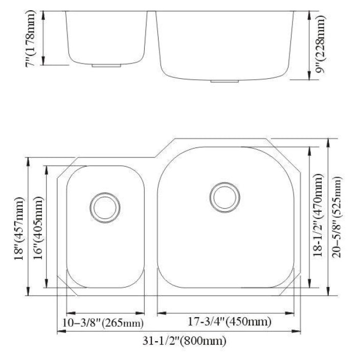Right Bowl Size 17-3/4 * 18-1/2 * 9
